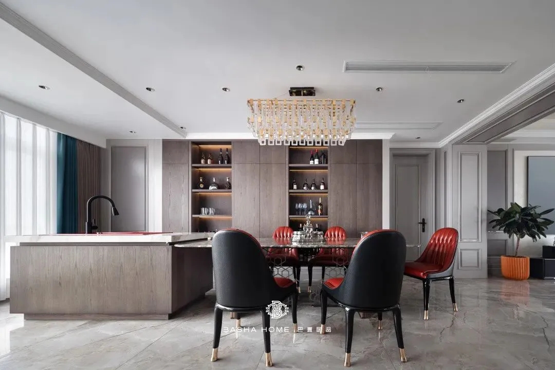 In the design of French light luxury style, designer abandoned the complex and intricate decorative shapes and sweet colors of traditional French, and instead use classic axis and symmetrical layout, combined with elegant spatial tones or geometric lines and elegant and fashionable soft furnishings, to create the French light luxury space style, welcoming long lost friends or shining daily life with a full sense of ceremony. In terms of color tone application, light colors are the main color tone, giving people a soft and comfortable feeling. A few bright colors are used for embellishment, making the space more visually layered on the basis of harmony and unity, adding warm and vitality to the space.